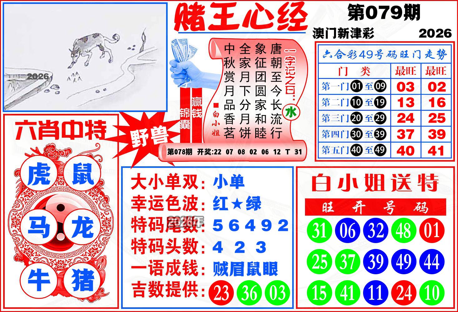 2026077期【六尾八码】开:06牛 |