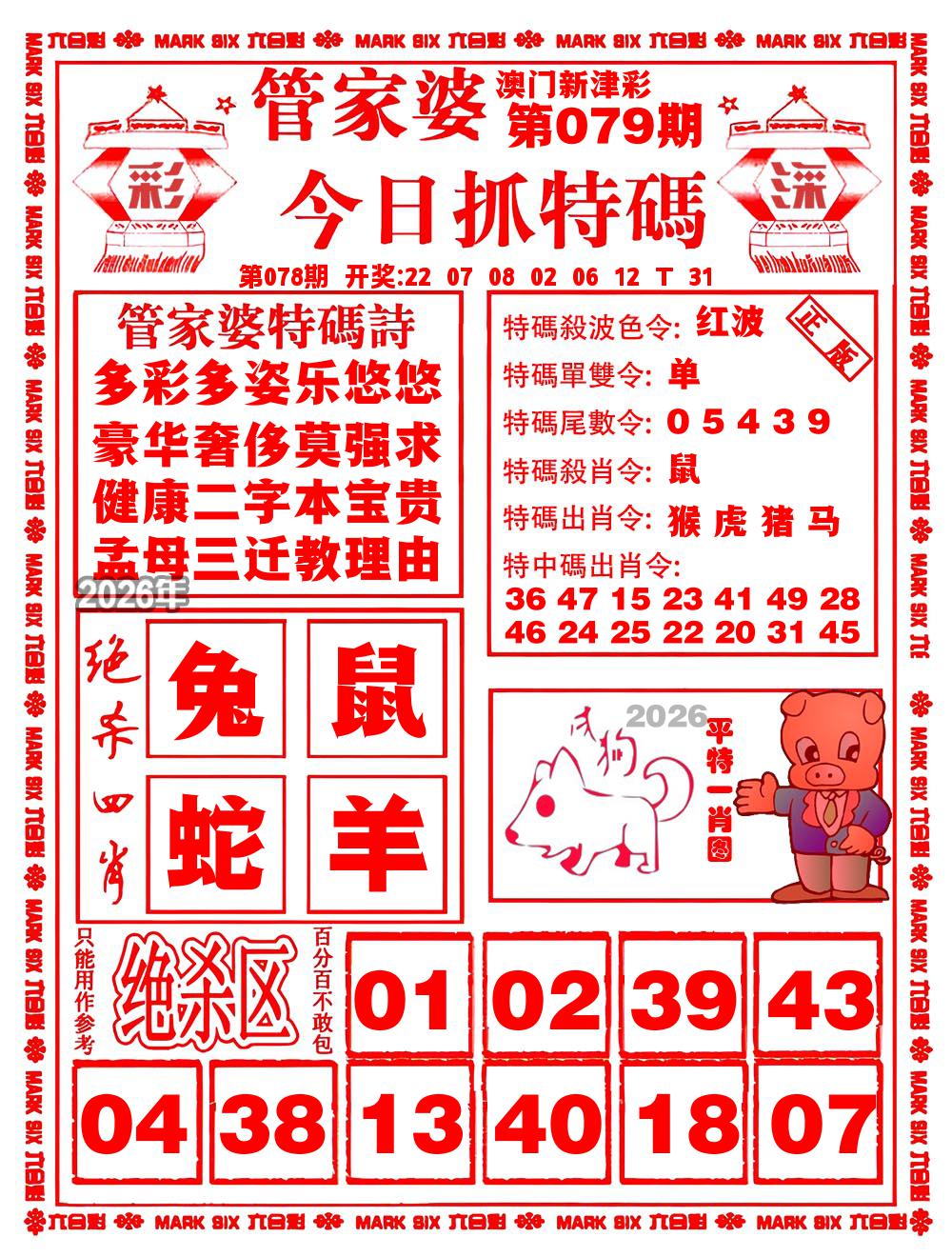 2026074期:【狗45.鼠31.羊24.马01.龙15】开46鸡错 |