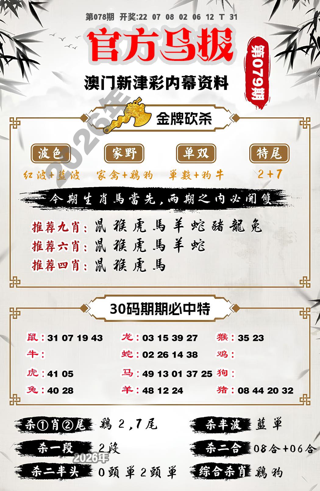 2026078期【六尾八码】开:31鼠 |